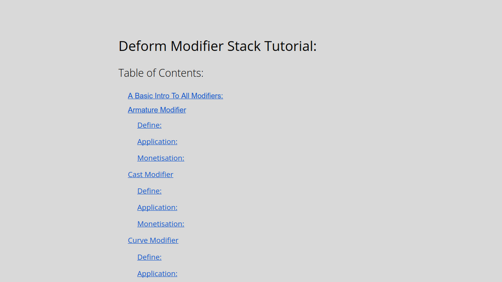 The nature of these video makes it difficult to go in detail about each modifier. So I wrote a PDF explaining the first 8 deform modifiers in detail.