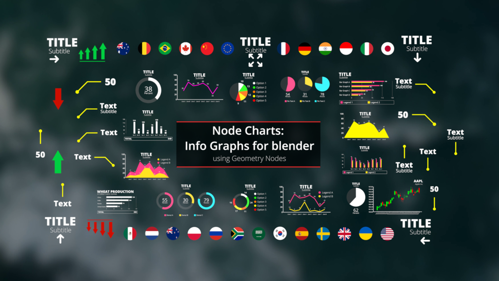 Node Charts: Info Graphs for blender (using Geometry Nodes) DEMO